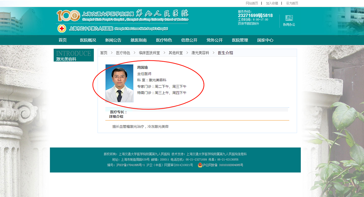 上海第九人民医院周国瑜教授作为国内胎记血管瘤诊疗领域的领军人物,长期深耕激光技术与胎记治疗的临床科研,主持多项省部级课题,在国内外权威期刊发表系列论文并参编国际激光医学专著。其主导的"氪激光光动力治疗鲜红斑痣"等研究成果获业内广泛认可。在临床治疗方面,周教授对血管瘤、鲜红斑痣、各类色素性胎记及皮肤瘢痕的激光诊疗造诣深厚,并多次受邀在美国激光医学与外科学会(ASLMS)、美国皮肤病学会(AAD)等国际学术会议作专题报告。